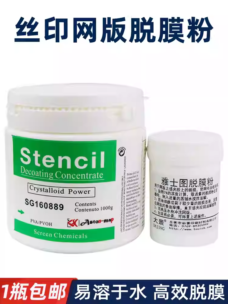 雅士图脱膜粉丝印网版脱膜剂感光胶脱膜液100G丝网印刷网版脱网粉