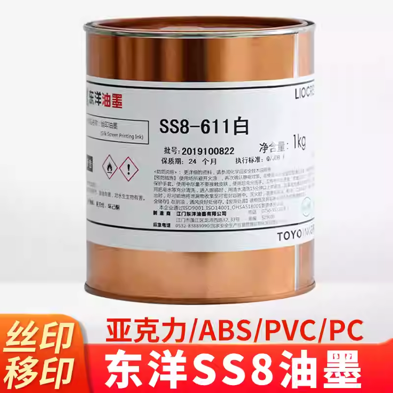 东洋丝网印刷油墨SS8系列是专为PVC、亚克力、ABS、PC等塑料材质研发的高性能丝印油墨,具有优异的附着力、耐候性和色彩饱和度。该系列产品采用进口环保原料,符合RoHS标准,广泛应用于电子产品、玩具、广告标识、日用品等行业。油墨流动性好,干燥速度快,印刷效果清晰细腻,可满足精细线条和大面积填充需求。同时具备良好的耐磨性和抗化学腐蚀性,确保印刷品长期使用不褪色、不脱落。